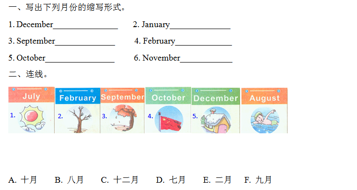 一、1. Dec. 2. Jan. 3. Sept. 4. Feb. 5. Oct. 6. Nov.