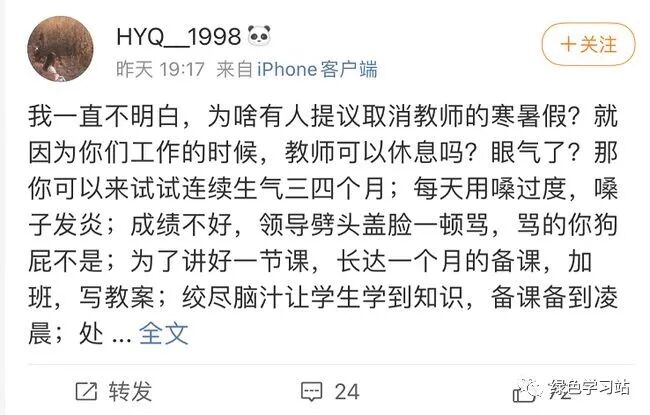还有网友说,教师们也很不容易,取消寒暑假就真的没盼头了。