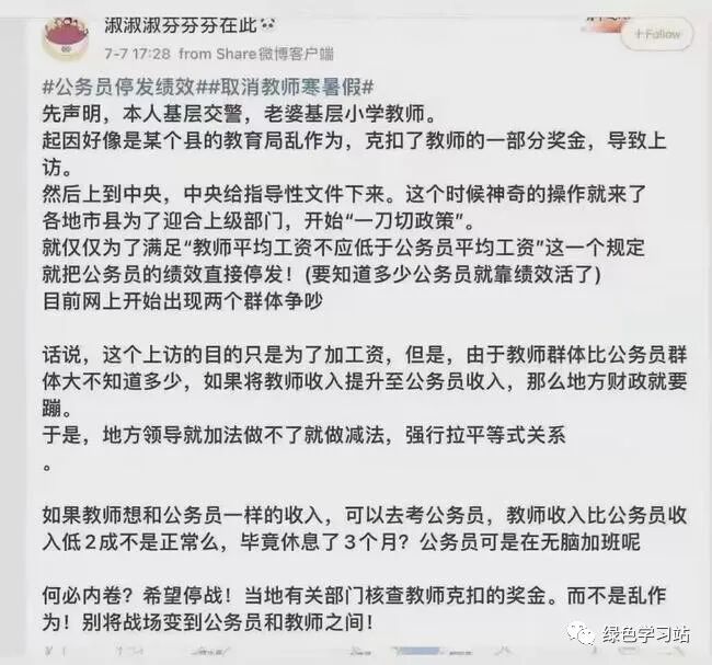 这两天全国的公务员和教师们为着取消绩效的事情,已经在内部吵起来了。