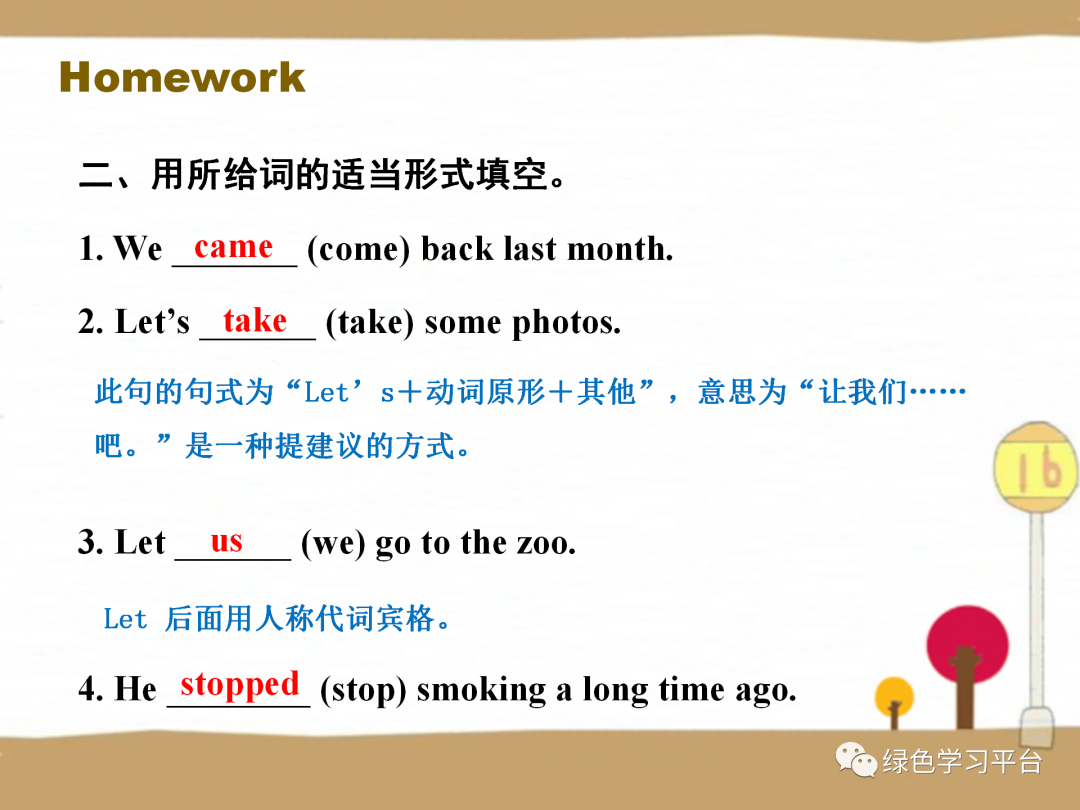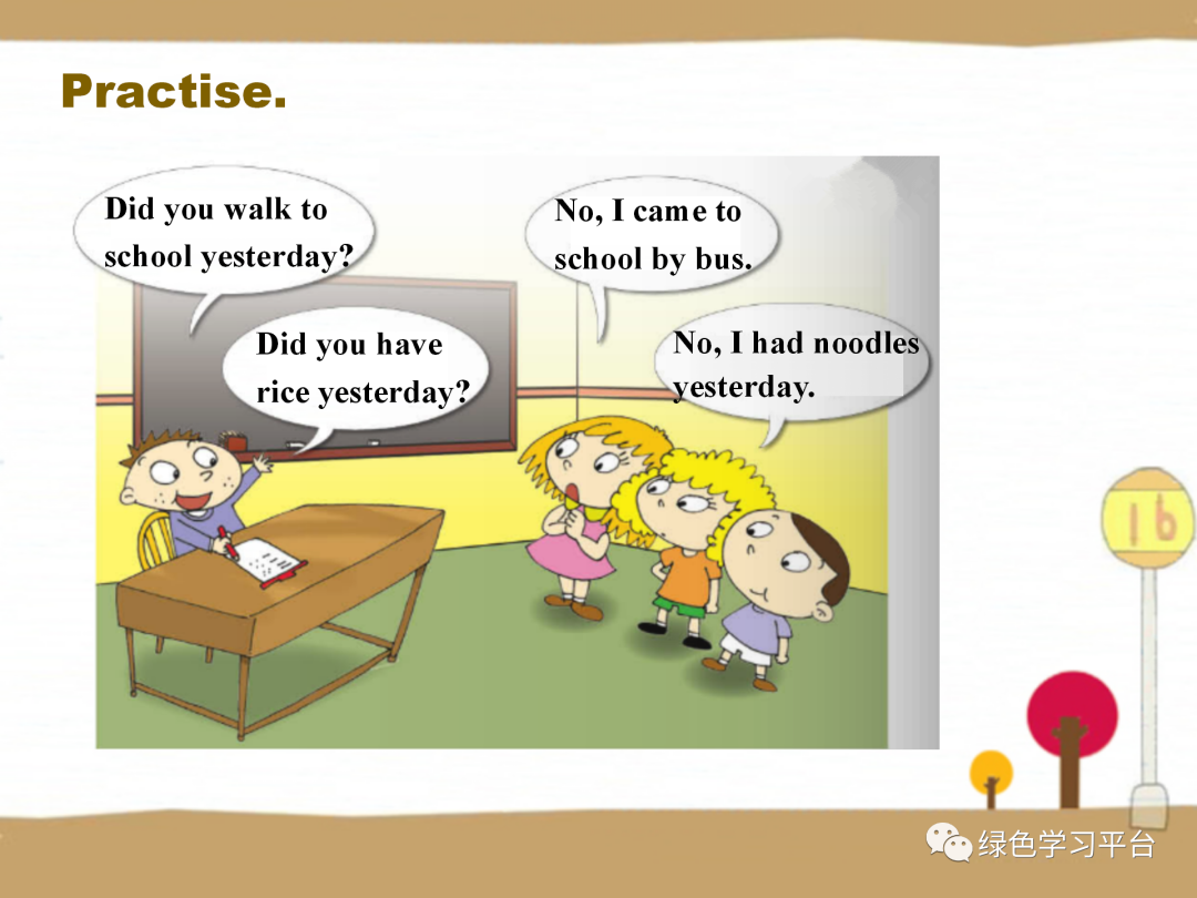 (在大屏幕上出示这些句子,告诉学生在交谈中可以通过这些问题来询问其他同学的暑假生活)