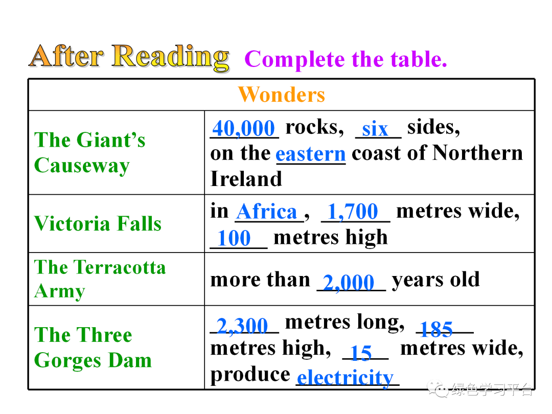 2. Read through the names of the wonders.