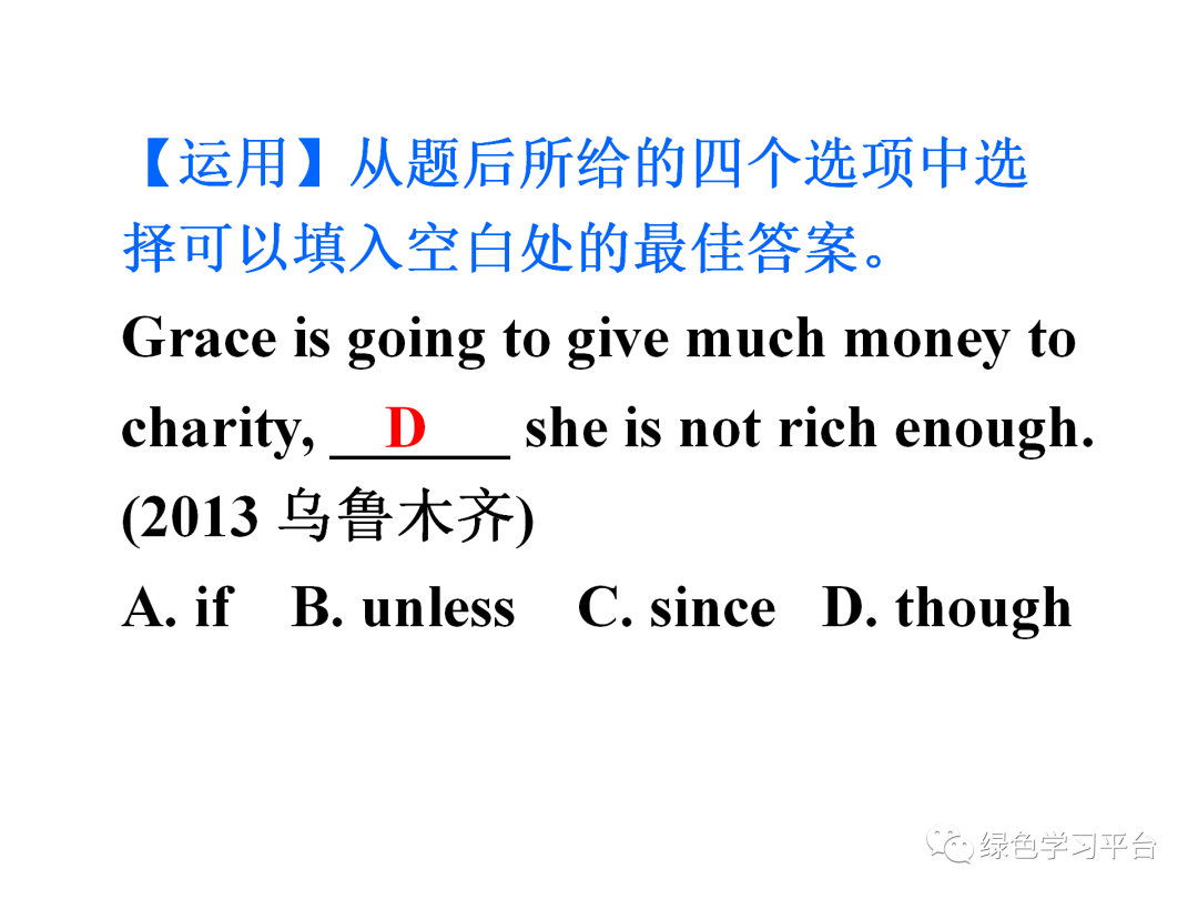 【运用】从题后所给的四个选项中选择可以填入空白处的最佳答案。