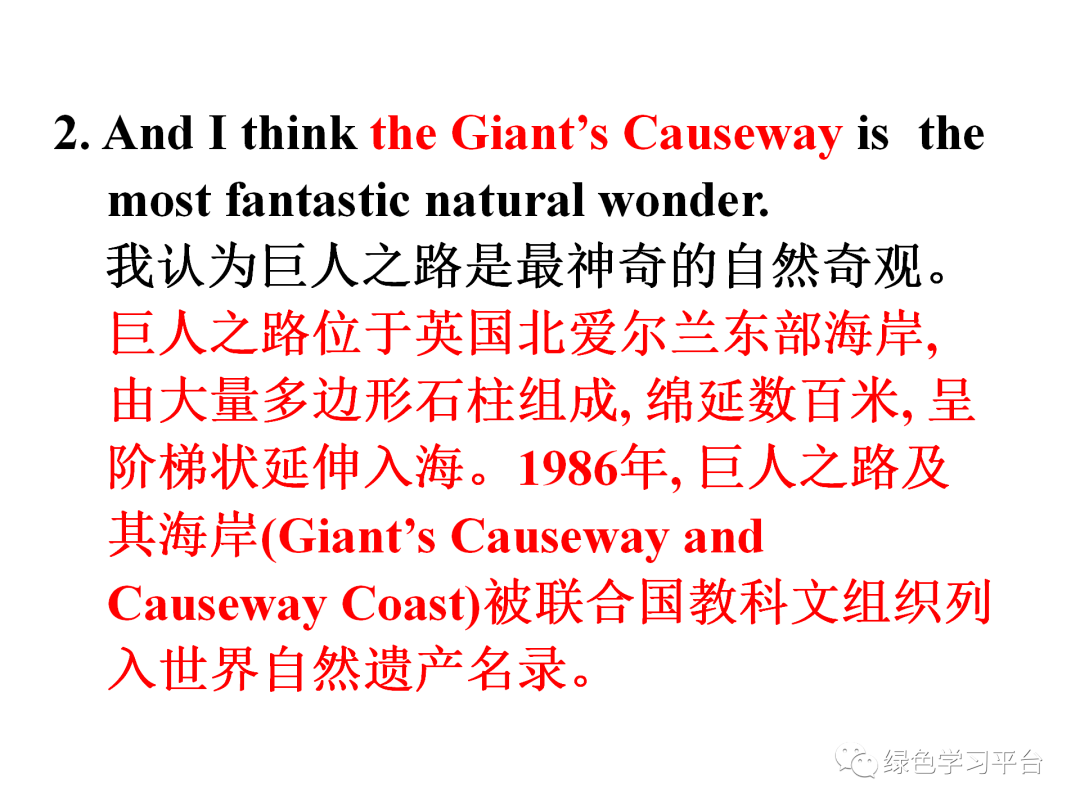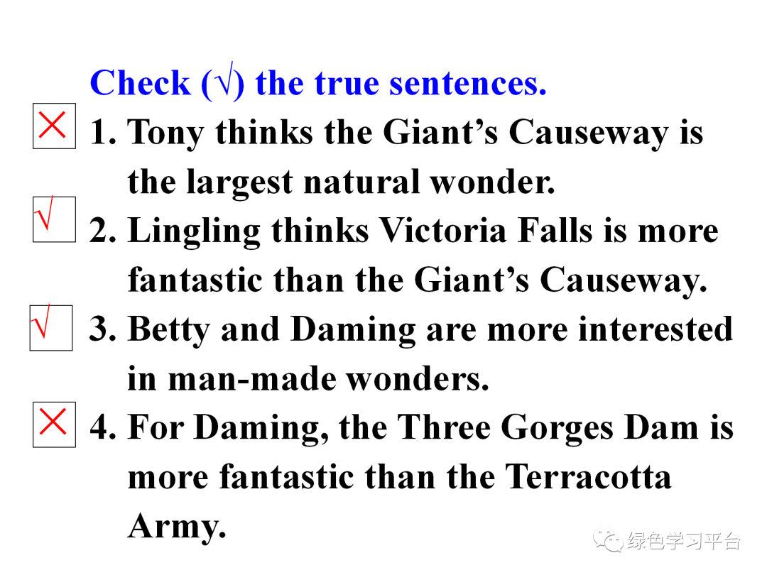 2) Lingling thinks Victoria Falls is more fantastic than the Giant’s Causeway.