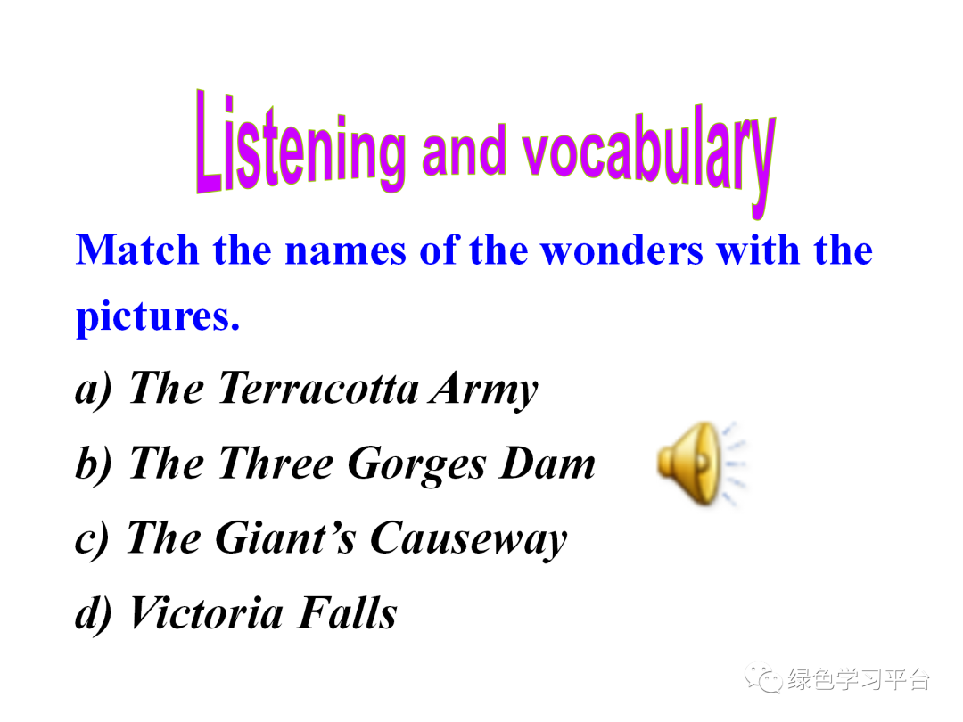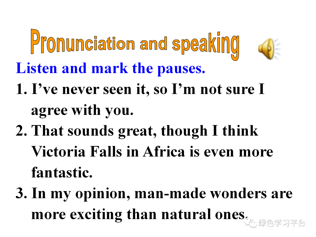 1. 领会并灵活使用下列词汇man-made, natural wonder , though, loud, opinion