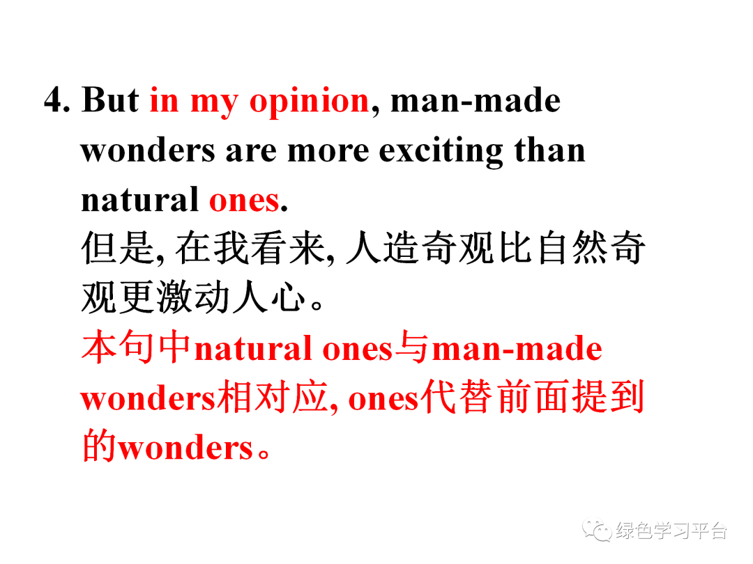 本句中natural ones与man-made wonders相对应,ones代替前面提到的wonders。