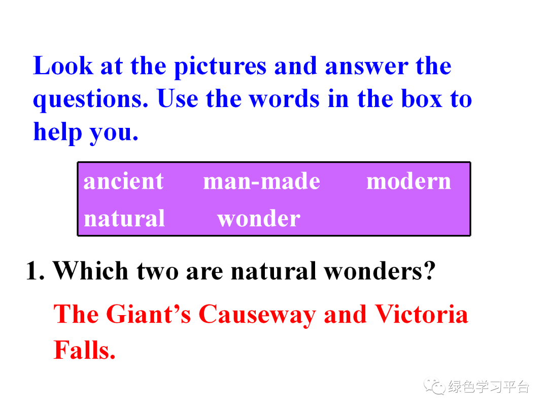 1. Show some pictures of the wonders of the world.