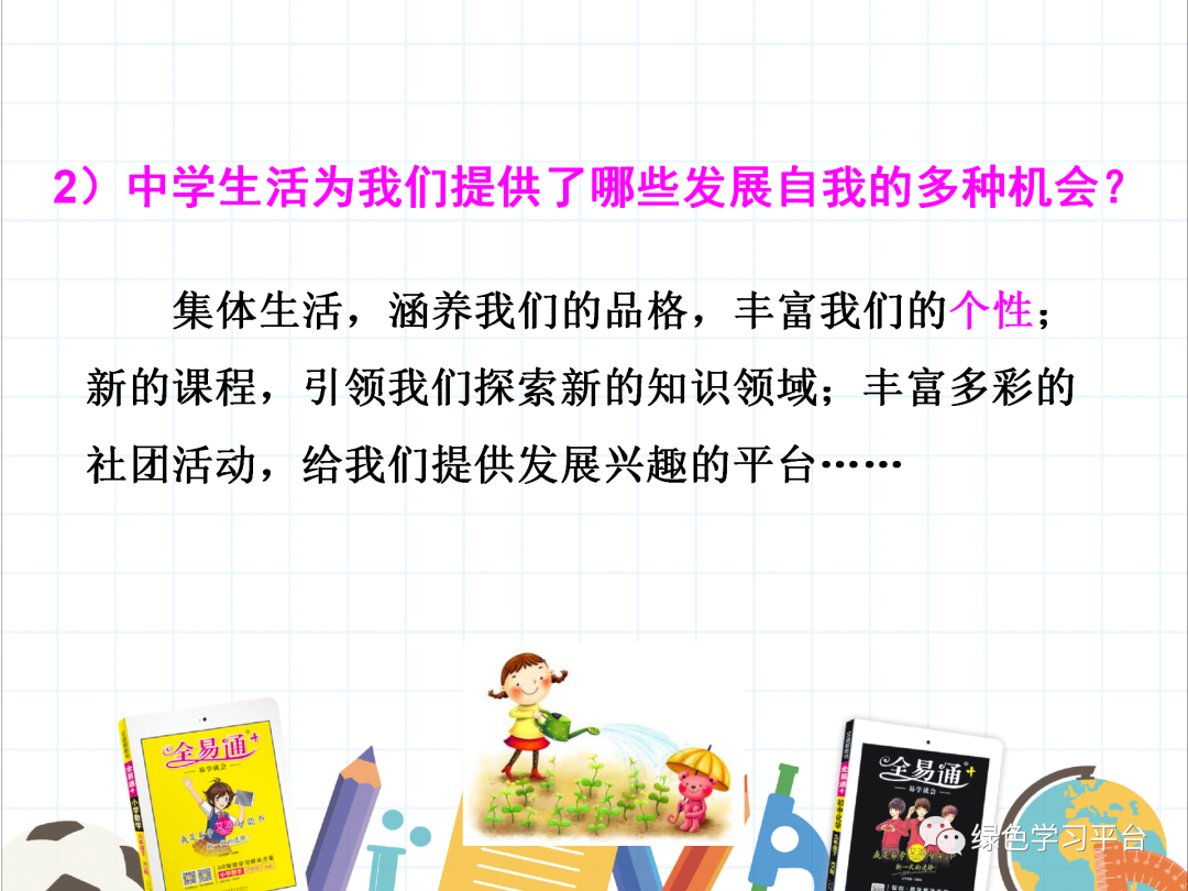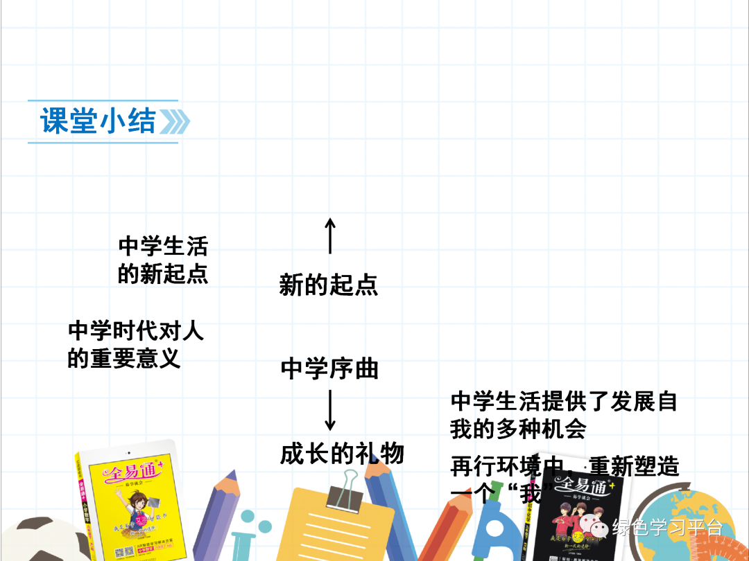 教师总结:中学生活,对我们来说意味着新的机会和可能,也意味着新的目标和挑战。这些都是生命馈赠给我们的成长礼物。
