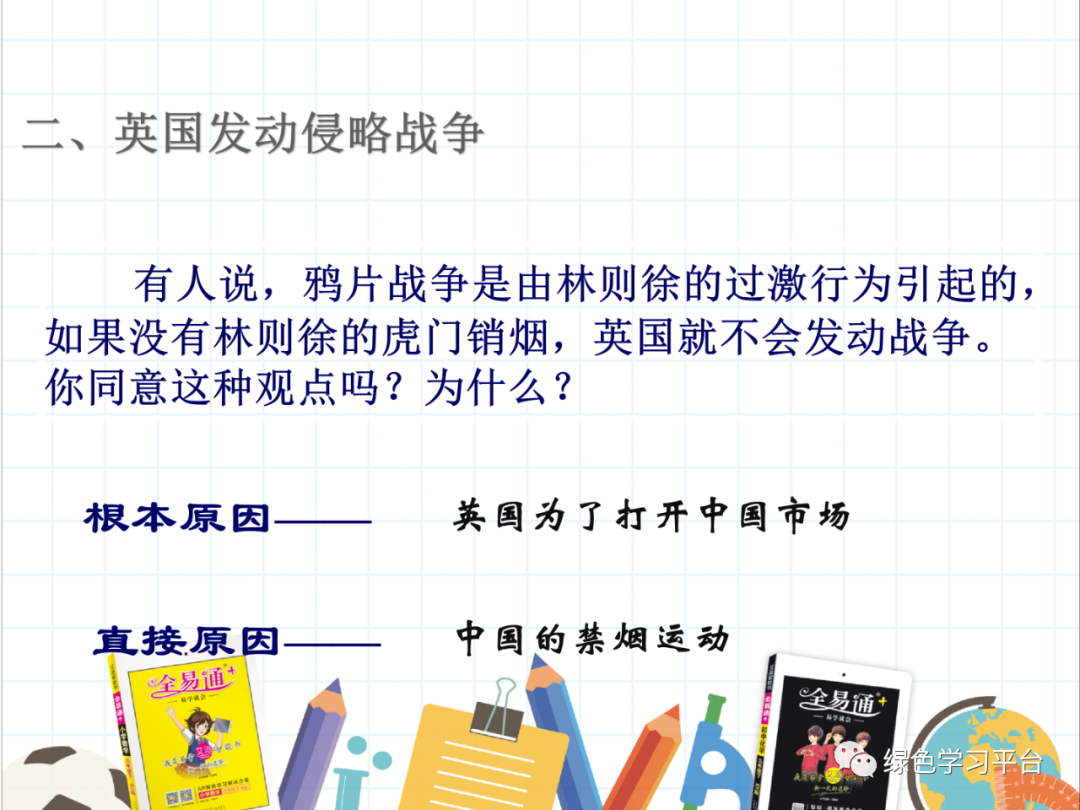 烟只是英国发动侵华战争的借口,这场战争的爆发是必然的,不可避免的。)