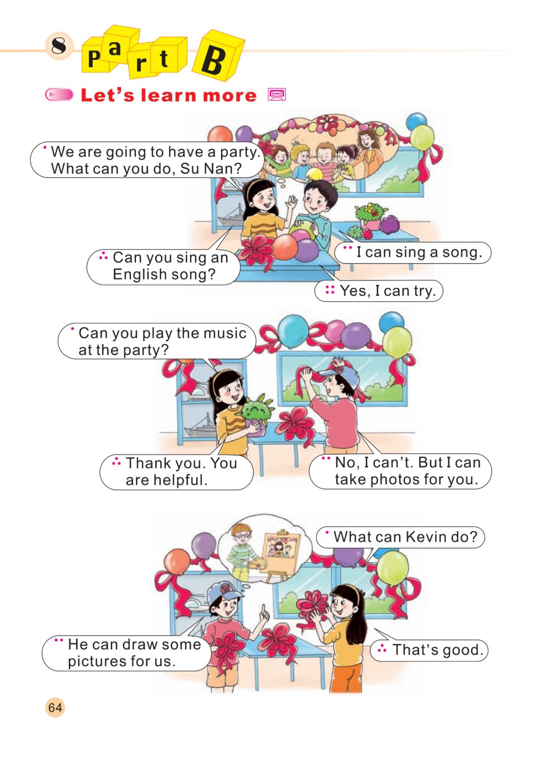一、1. 可以 2. help 3. 很好 4. 游泳 5. 爬 6. 猴子