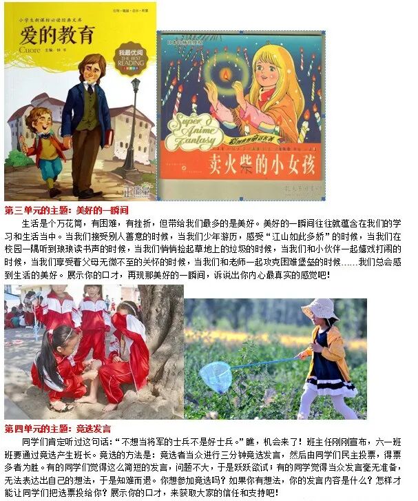 4.组织语言。请把你的想法条理清晰地说出来。描述名著中的精彩片段时,尽量做到绘声绘色,声情并茂,打动并吸引同学们认同你的观点,对你喜欢的这部名著产生浓厚的兴趣。