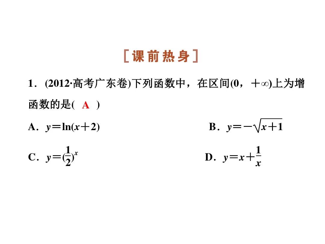 函数的单调性是函数的局部性质,即它通常是在函数定义域的某个子集上具有的性质;而函数奇偶性、周期性、最大值、最小值是函数在整个定义域上的性质,属于函数的整体性质.另外,通过研究函数的单调性,就容易得到函数的最大(小)值.