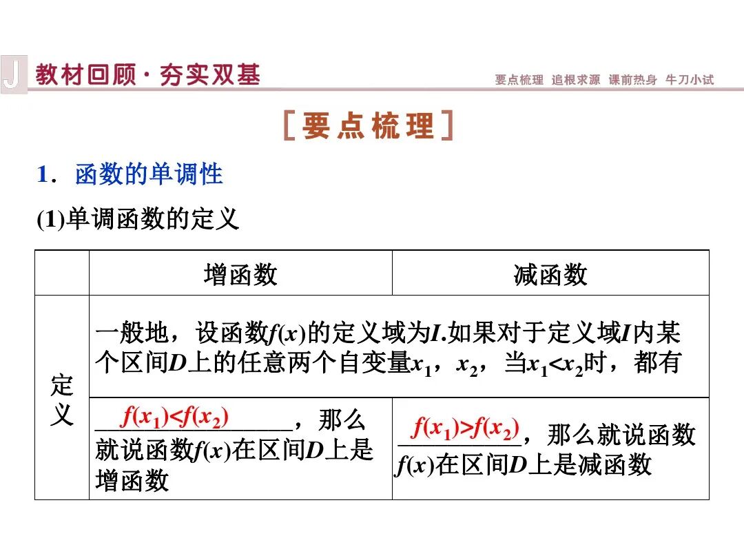 (1)知道用符号语言刻画函数单调性时,“任意”“都有”等关键词的含义;能够从函数图象,或通过代数推理,得出函数的单调递增、单调递减区间;知道函数的单调性反映了现实世界中事物在量的增加或减小上的变化趋势.
