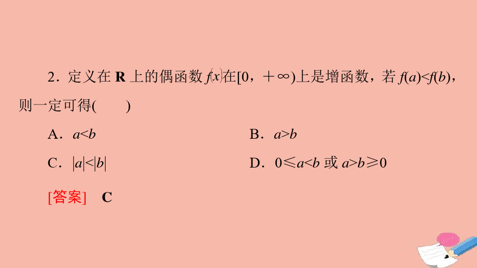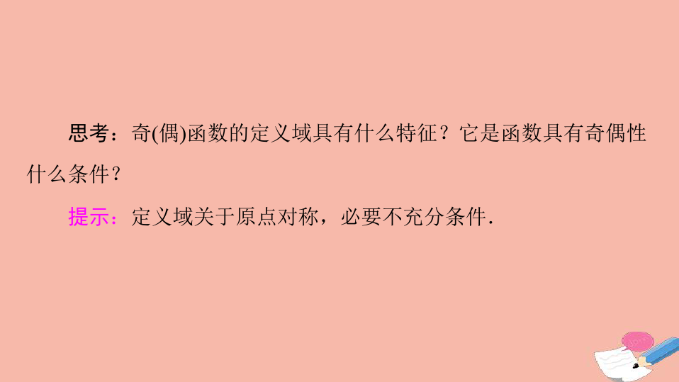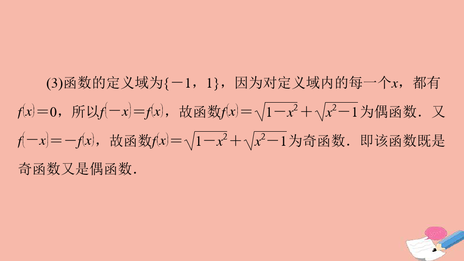 2、整体性:奇偶性是函数的整体性质,对定义域内任意一个都必须成立;