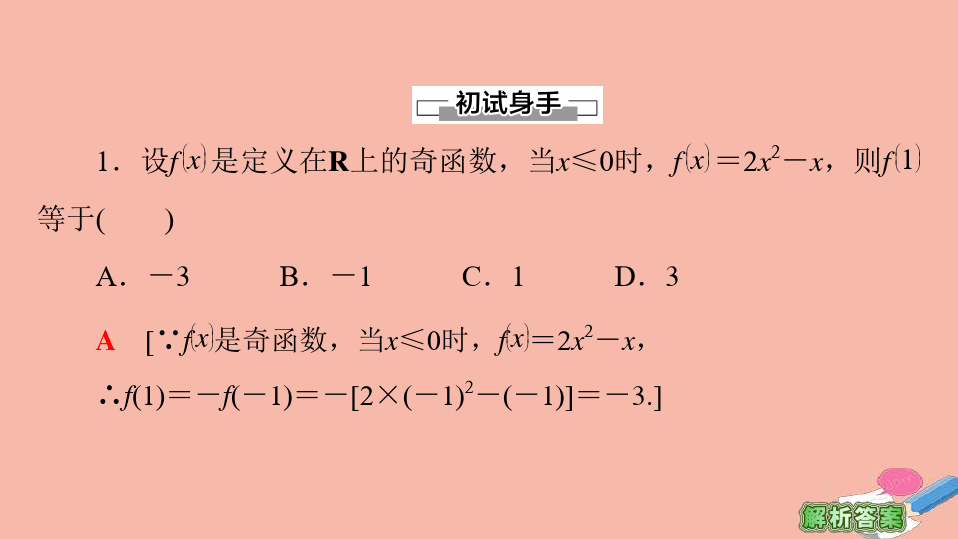 3.函数f(x)是定义在R上的奇函数,当x>0时,f(x)=-x+1,则当x<0时,f(x)的解析式为()