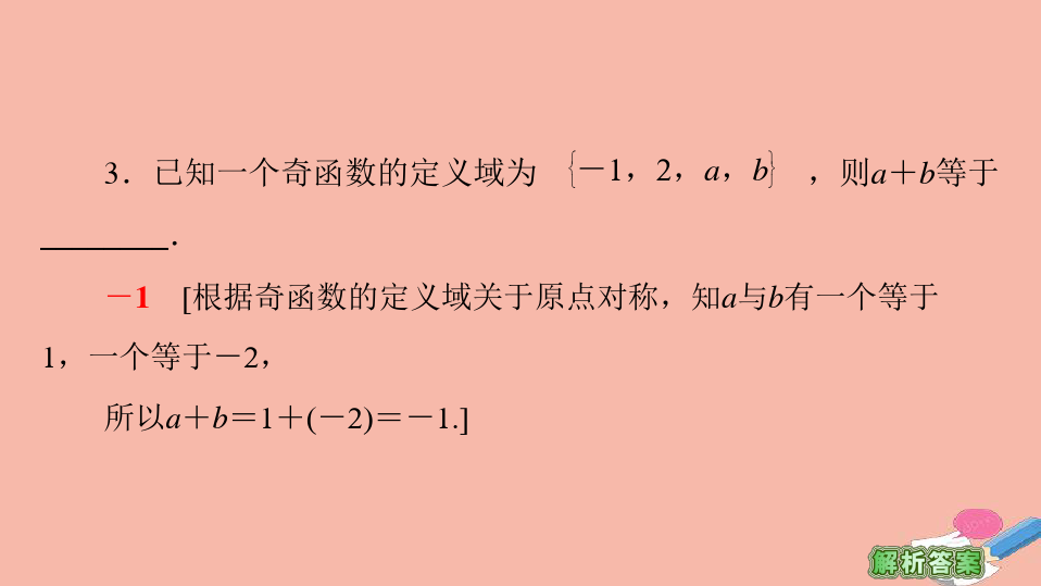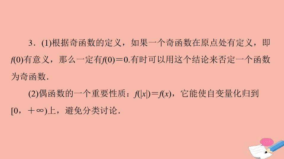 3.若y=f(x)为奇函数,且y=f(x)在x=0处有意义,则f(0)=0.