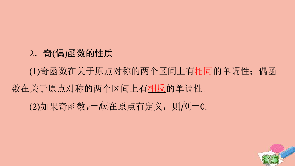 2.函数奇偶性与单调性(最值)之间的关系