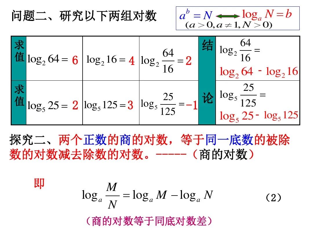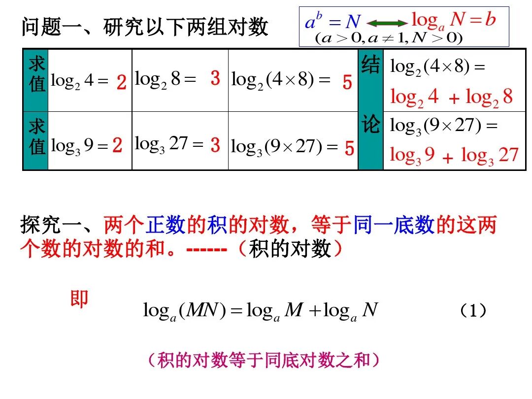 1、通过具体实例引入,推导对数的运算性质;