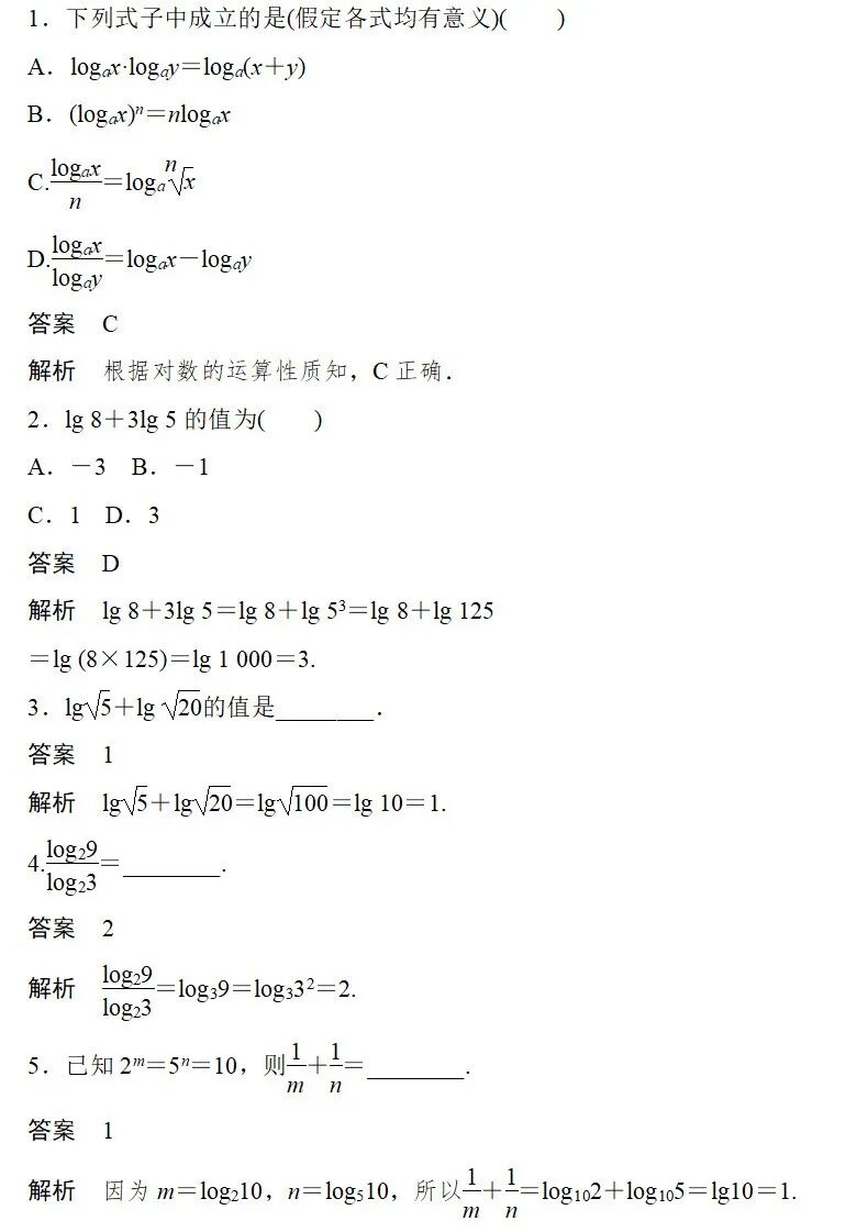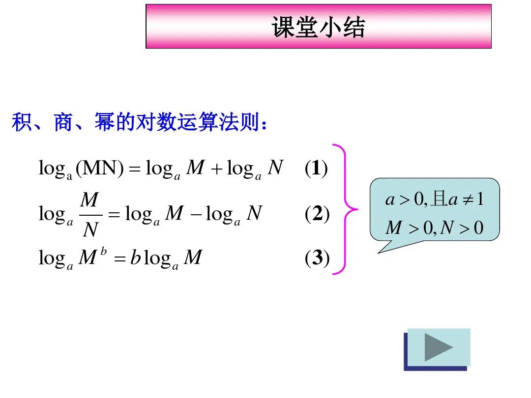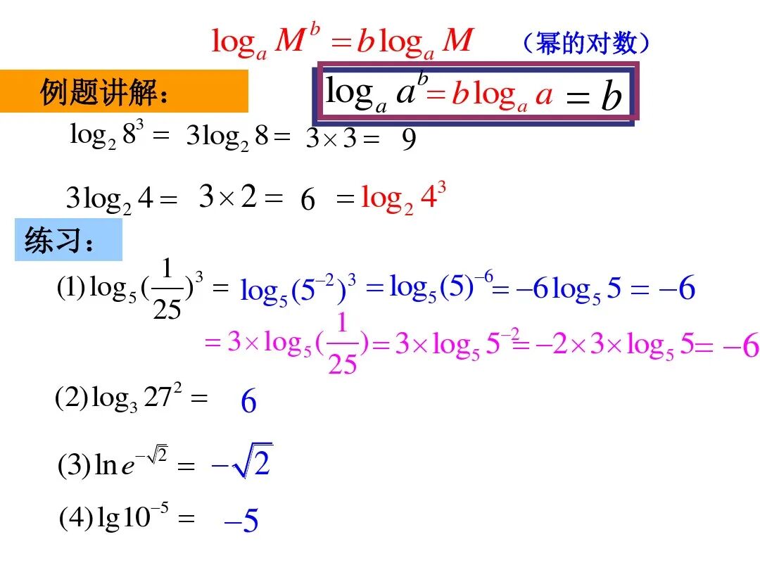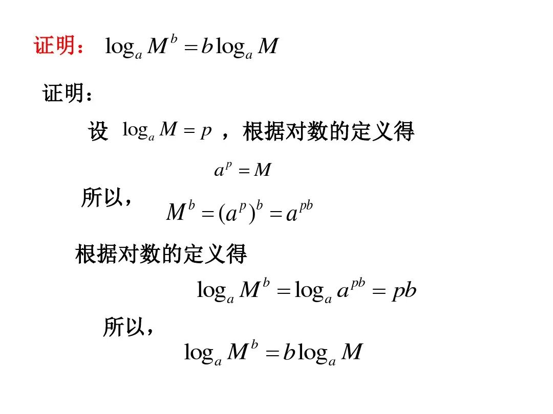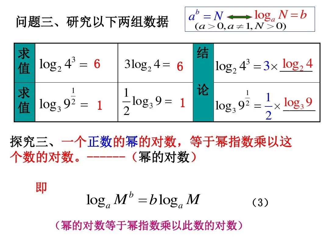 (3)logbn=logab; (4)logbm=nlogab;