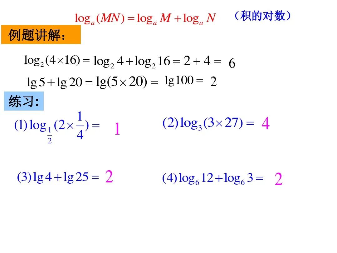 (1)loga(M·N)=logaM+logaN,
