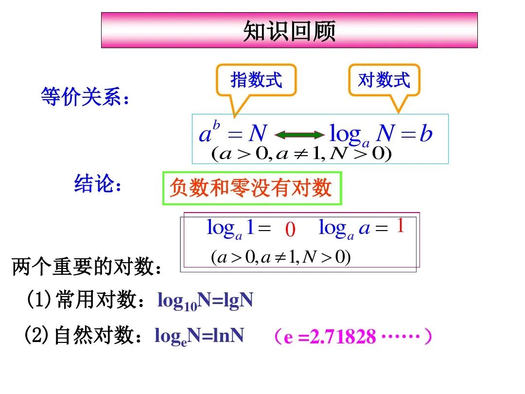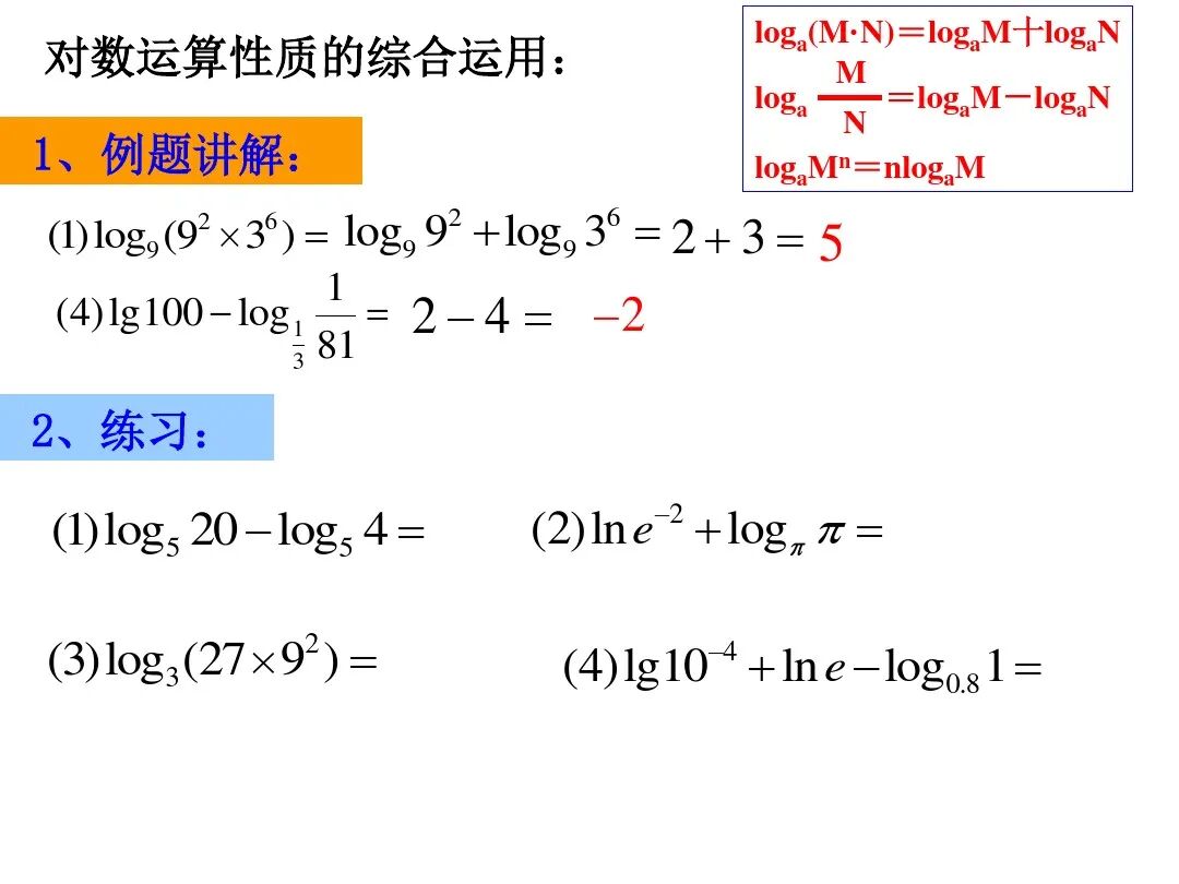 2、熟练掌握对数的运算性质,学会化简,计算.