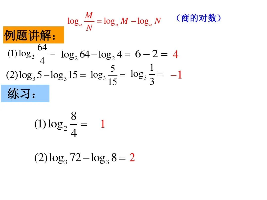 (2) logaN=logaM-logaN;