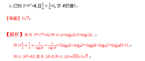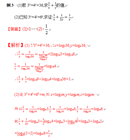 对数概念的实质是给出了指数式与对数式之间的关系,因此如果遇到条件中涉及指数幂的连等式时,常引入辅助变量,利用指数与对数间相互转化的关系,简化求解过程.