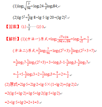 (1)“收”,将同底的两个对数的和(差)收成积(商)的对数;
