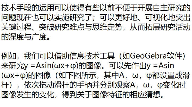 几何意义的相关猜想。这里学生通过操作来学习、自主发现规律。这样既激发了兴趣、拓展了研究空间,又提升了效率、增强了体验!