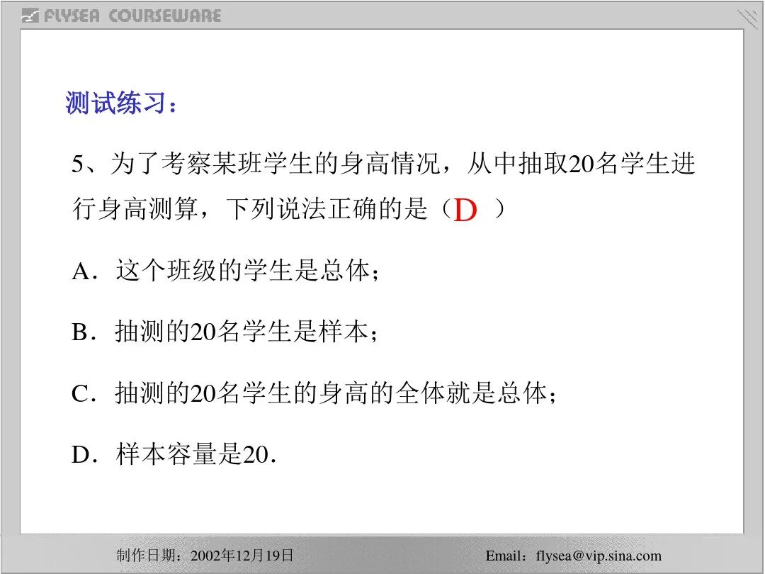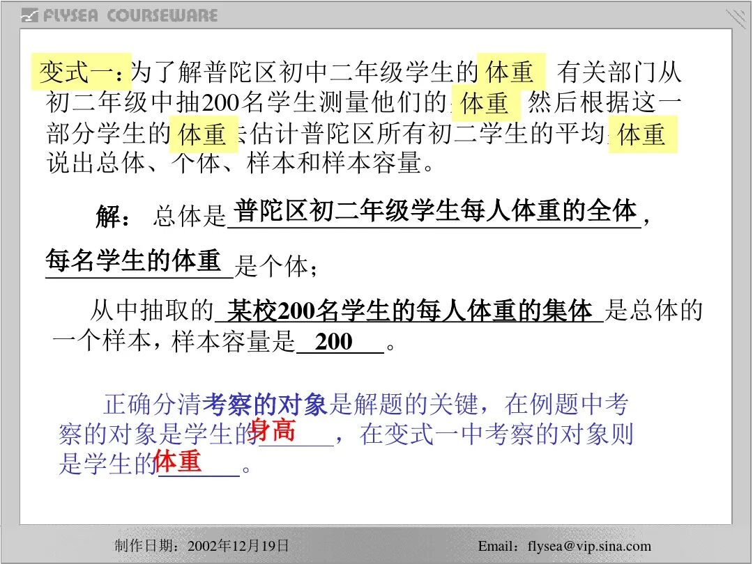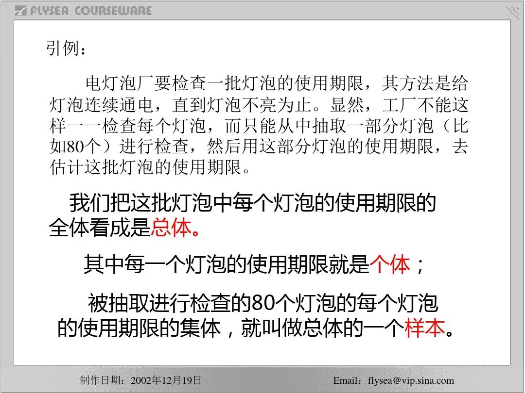 孩子:“妈妈,这次的火柴全划得着,我每根都试过了.”妈妈:“啊!” 在这个故事中,体现了数据收集调查的两种方式:普查与抽样调查. 定义:为了特定目的对全部考察对象进行的全面调查,叫做普查.