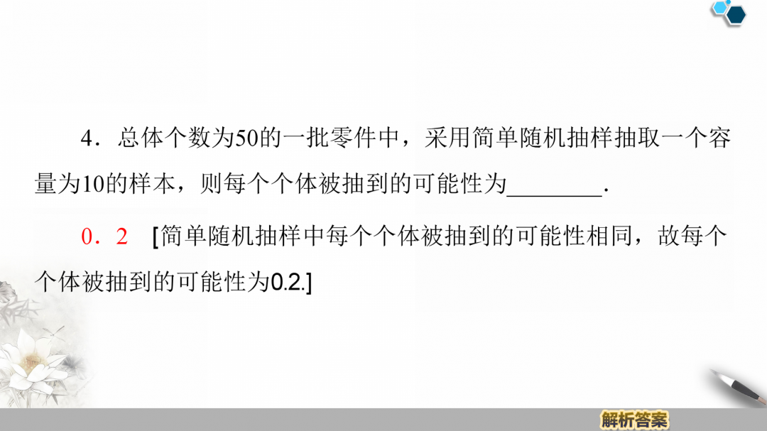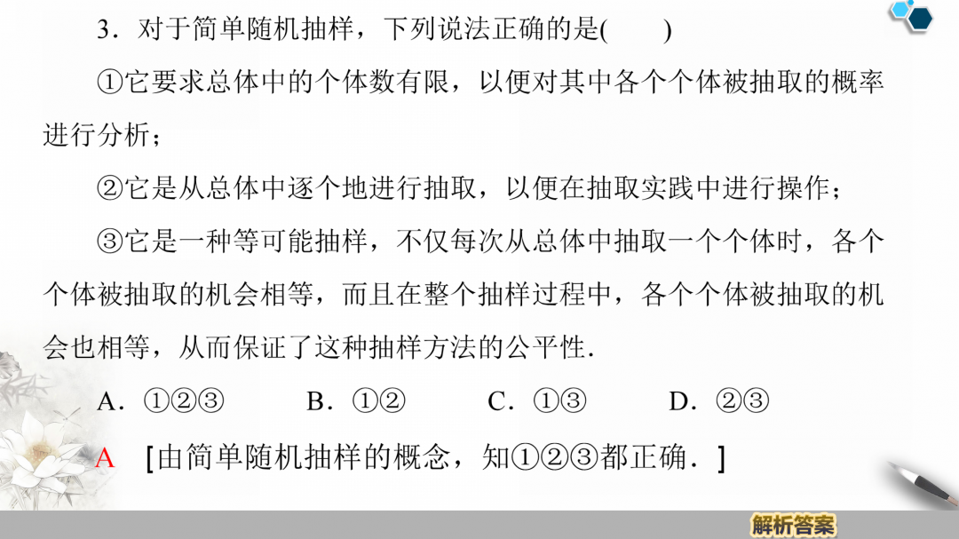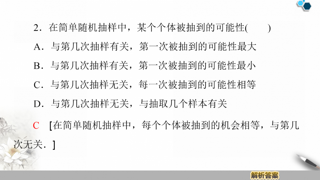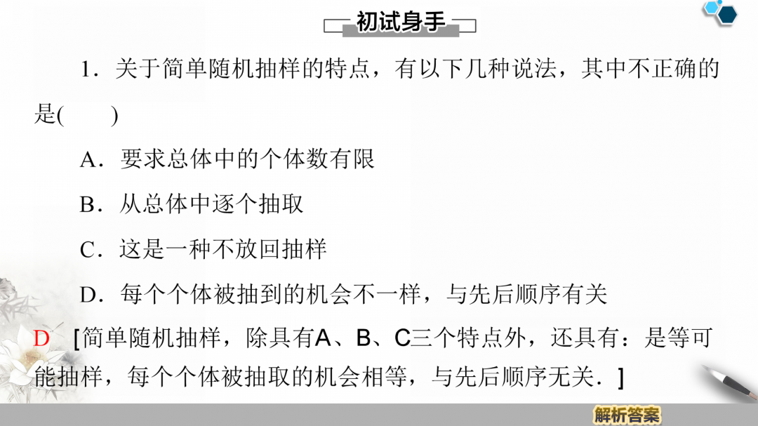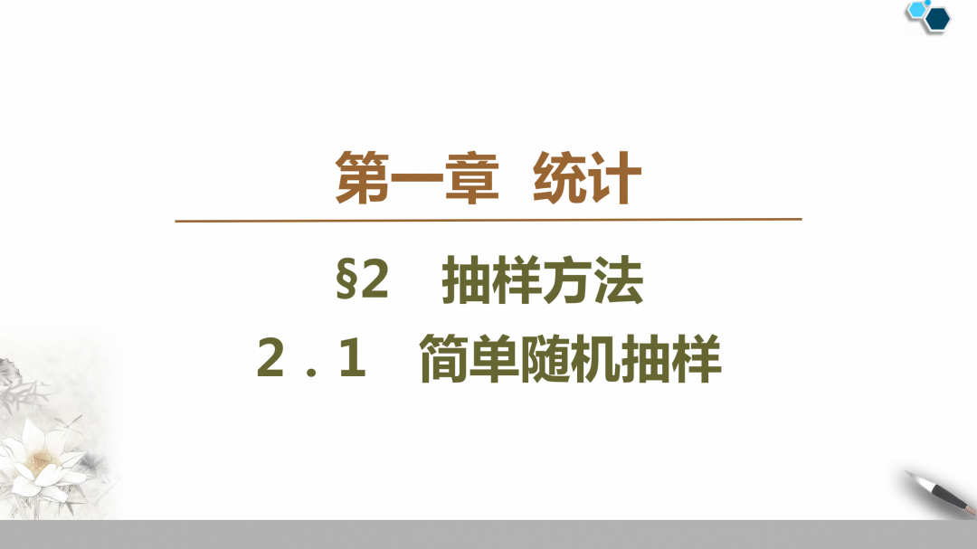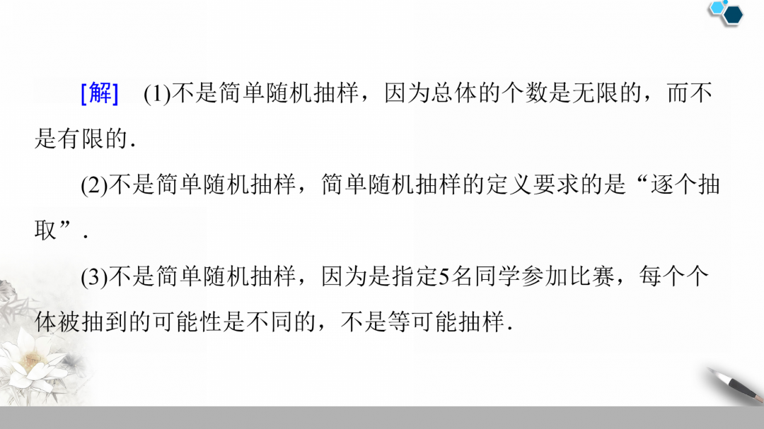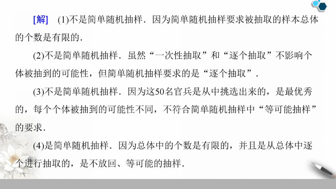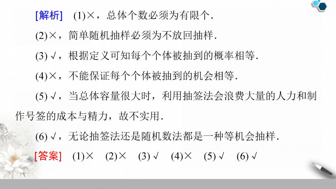(1)了解简单随机抽样的特点、适用范围及必要性;
