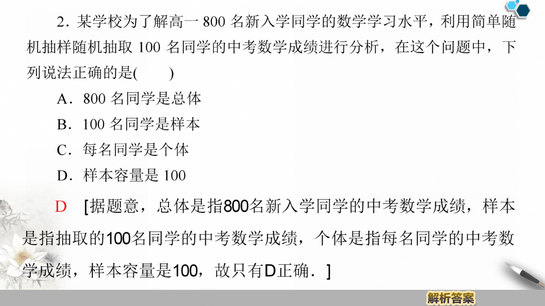 1.通过实例分析,了解总体、样本、样本容量、普查和抽样调查的概念.(数学抽象)