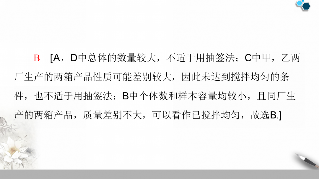 (3)在简单的实际情境中,能根据实际问题的特点,设计恰当的抽样方法解决问题;