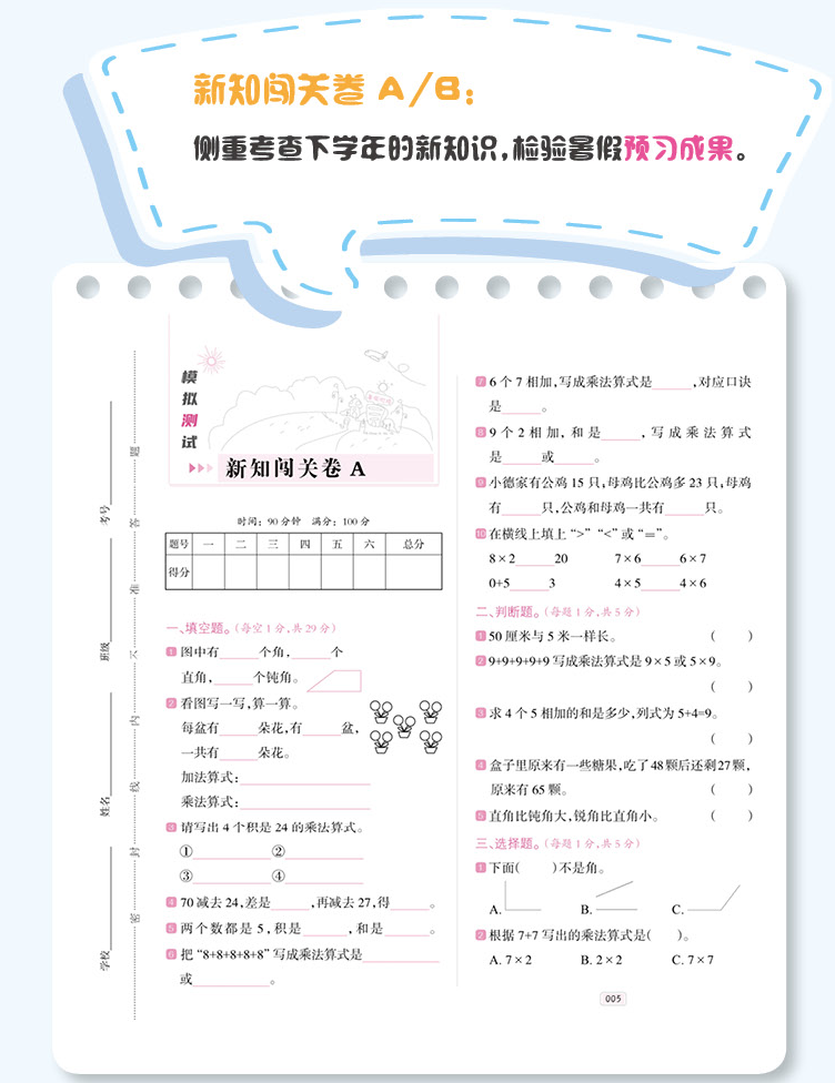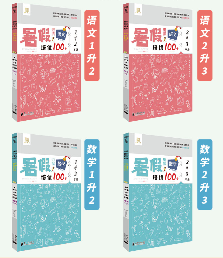 所以这次给大家推荐这款《暑假培优100分》套装,针对一年级升二年级和二年级升三年级的小朋友,每个年龄段包括语文和数学两门学科,另外还赠送通关测试卷4套,让孩子轻松做好一升二,二升三的衔接。