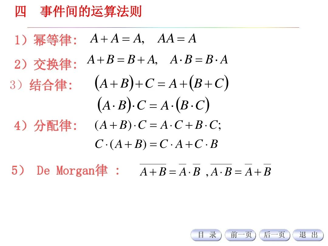5. 化简下列关于事件的运算式:(1)(AB) ∪(AB) ∪(AB) ∪(AB) (2)(A∪ B)(A ∪ B) ∪ (A∪ B) ∪(A ∪ B)