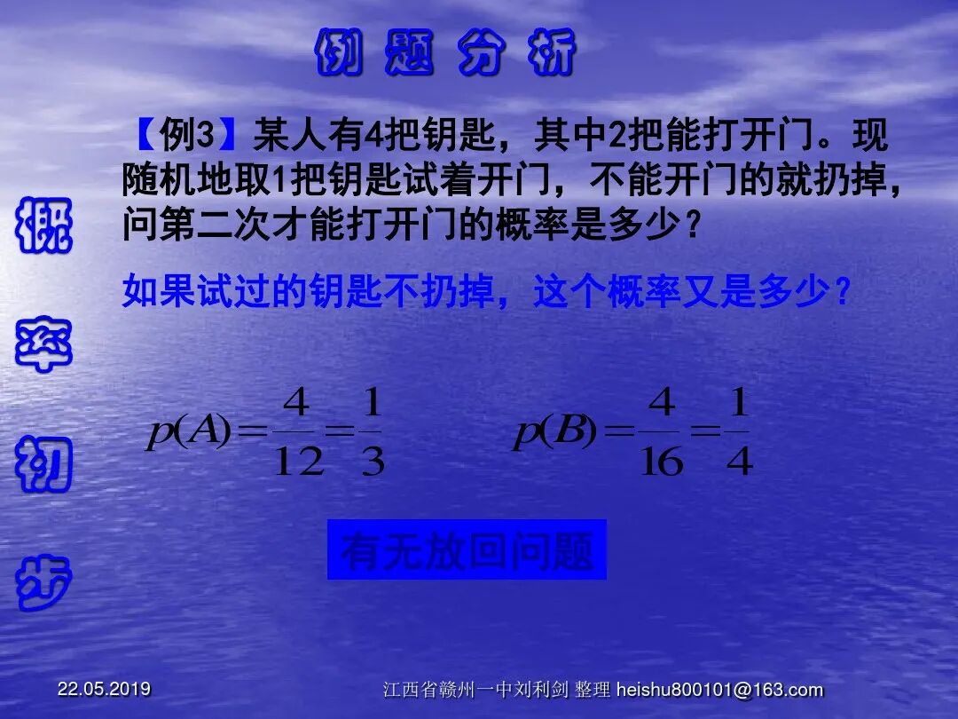 2、过程与方法:(1)通过对现实生活中具体的概率问题的探究,感知应用数学解决问题的方法,体会数学知识与现实世界的联系,培养逻辑推理能力;(2)通过模拟试验,感知应用数字解决问题的方法,自觉养成动手、动脑的良好习惯.