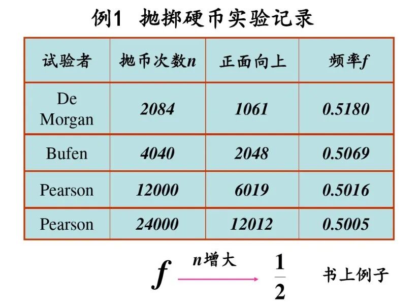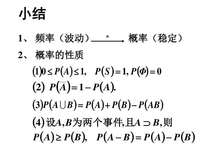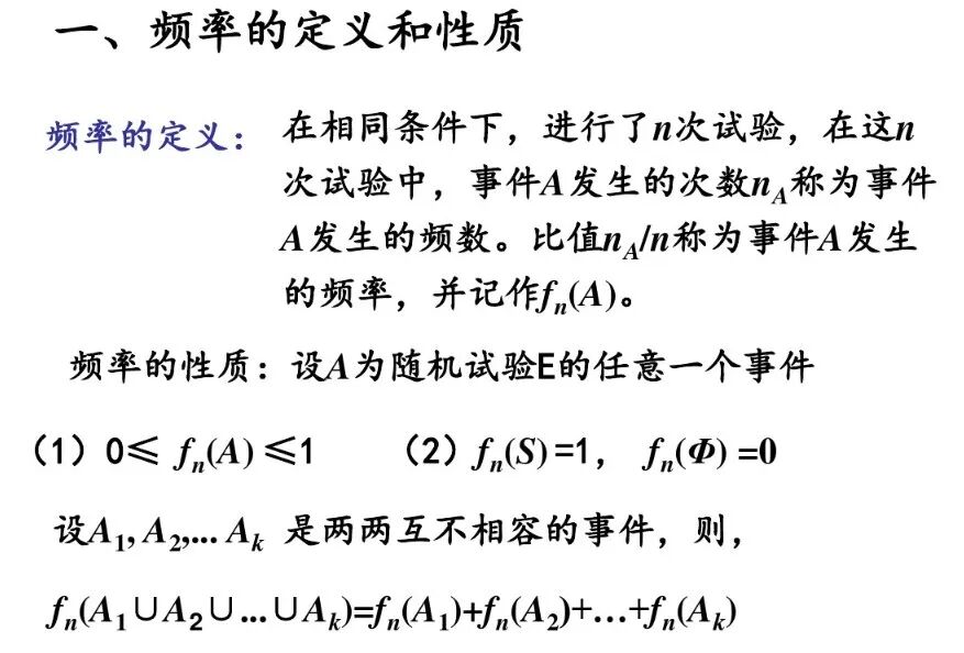 (1)随机性:在任何确定次数的随机试验中,一个随机事件A发生的频率具有随机性.