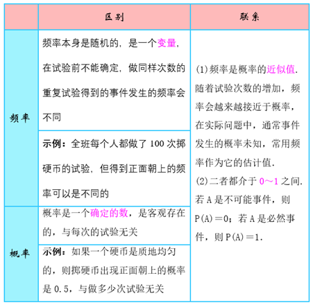 ①频率是反映事件发生的频繁程度,概率是反映事件发生的可能性的大小;