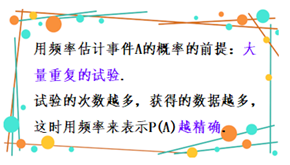 (2)波动性:当试验次数较少时,频率在概率附近波动幅度较大;当试验次数较大时,频率在概率附近波动幅度较小.