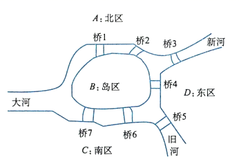 实际问题:普莱格尔河穿过美丽的哥尼斯堡城(现为俄罗斯的加里宁格勒).普莱格尔河有两个支流,在城市中心汇成大河,中间是岛区,在河上有七座桥,如图.