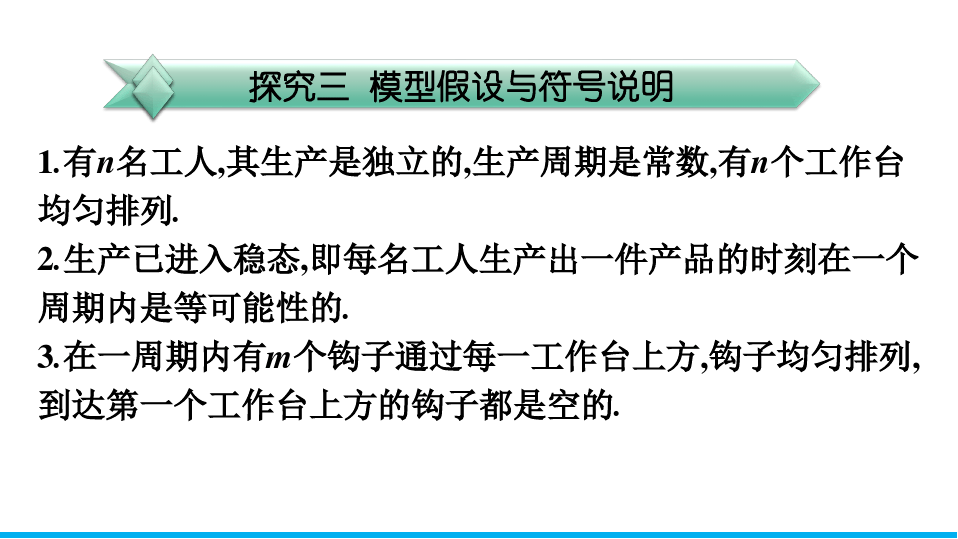 二.模型假设 有了模型准备的基础,要想把实际问题变为数学问题还要对其进行必要合理的简化和假设.明确了建模目的又掌握了相关资料,再去除一些次要因素.以主要矛盾为主来对该实际问题进行适当的简化并提出一些合理的假设。