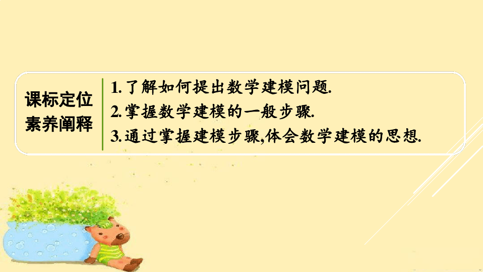 三.模型构成 在模型假设的基础上,选择适当的数学工具并根据已知的知识和搜集的信息来描述变量之间的关系或其他数学结构(如数学公式、定理、算法等)。