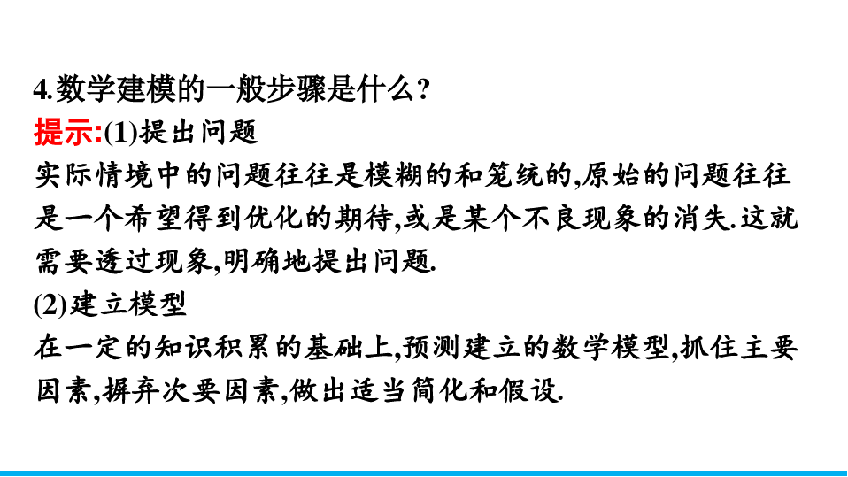 应该指出,并不是所有问题的建模都要经过这些步骤,有时各步骤之间的界限也不那么分明,建模时不要拘泥于形式上的按部就班。