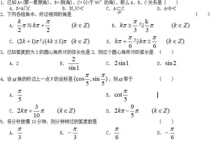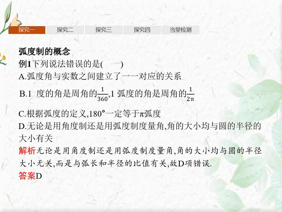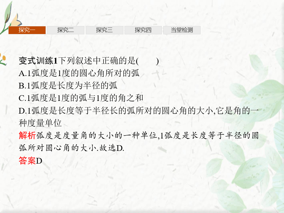 弧长等于半径的弧,其所对的圆心角为1弧度。