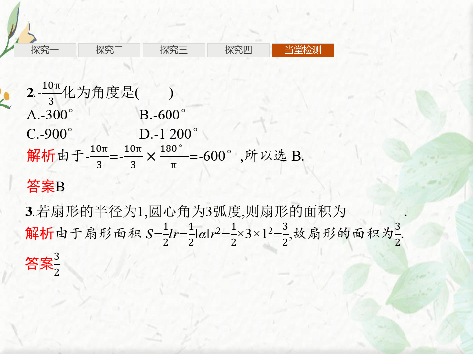 | 对角度制和弧度制进行换算,并观察特殊角的弧度数,发现弧度制的优点,增加感性认识。