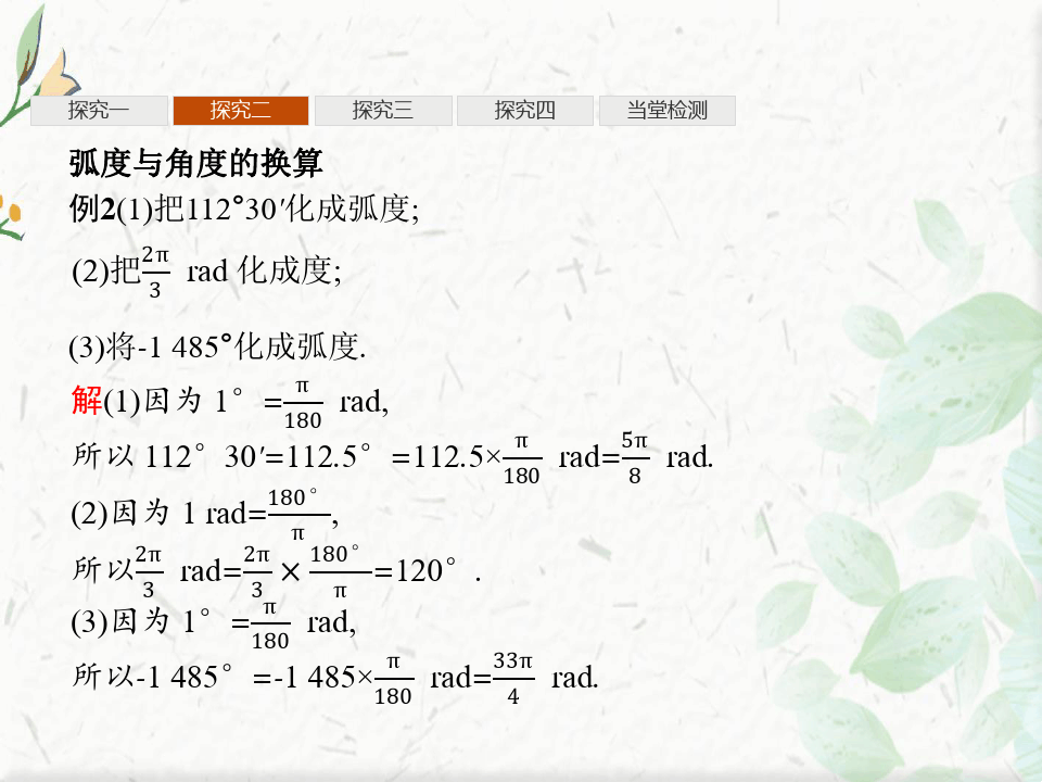 (三)巩固 新知(约12 分钟) | 例一 把化成弧度