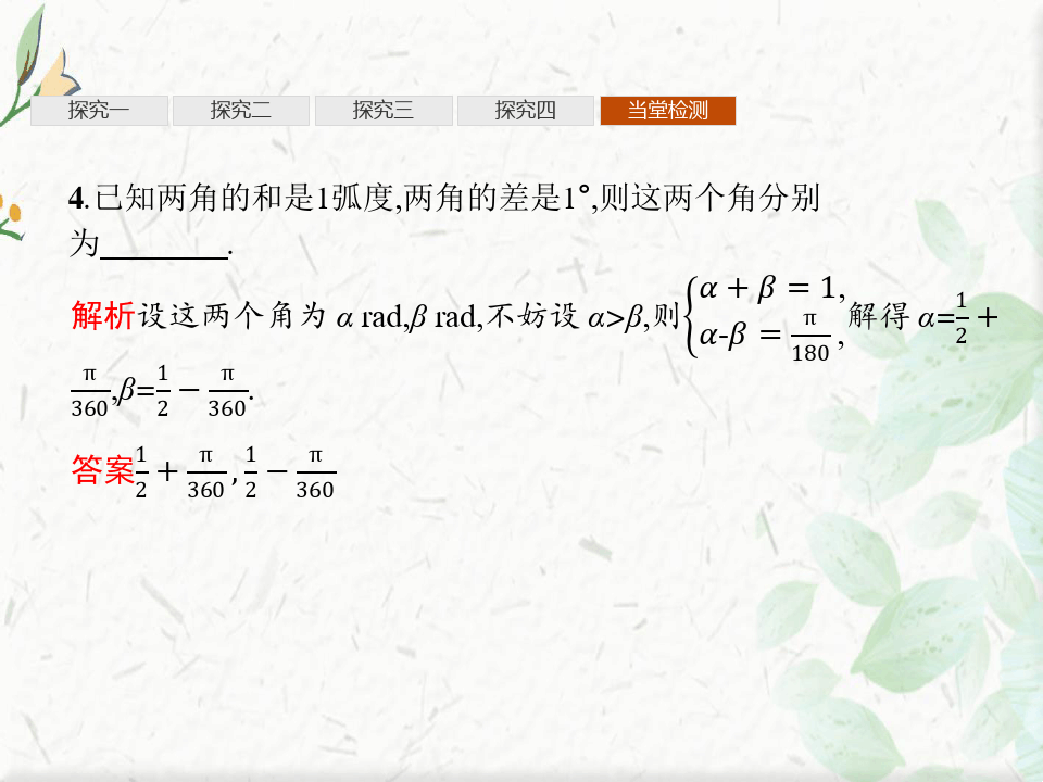教学重点 :理解弧度的意义,能正确地进行角度制与弧度制的换算。