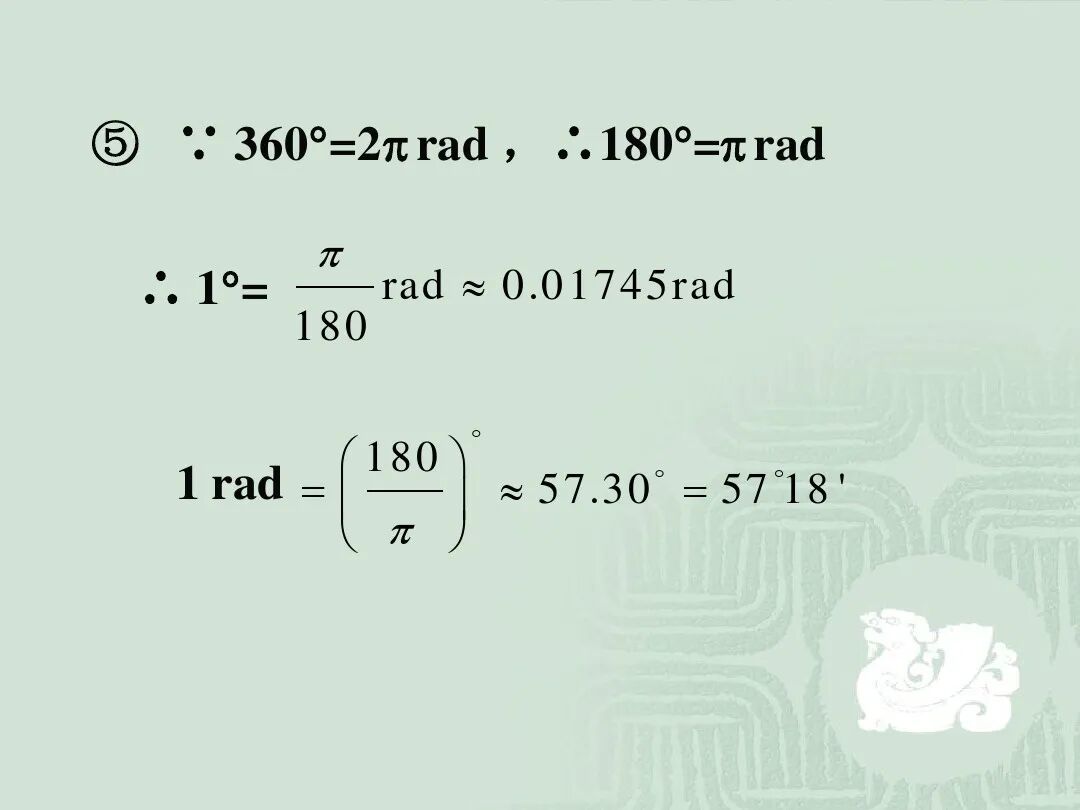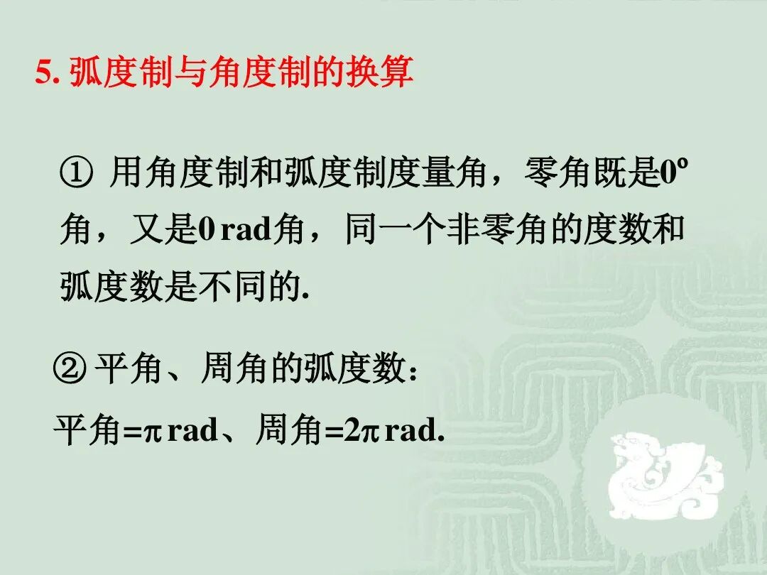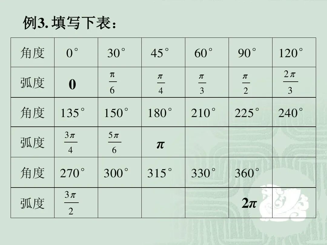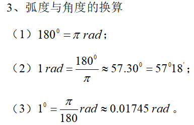3.弧度与角度的换算。