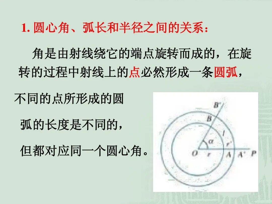 圆心角、弧长和半径之间的关系: