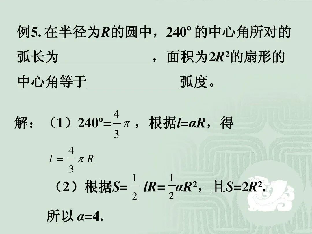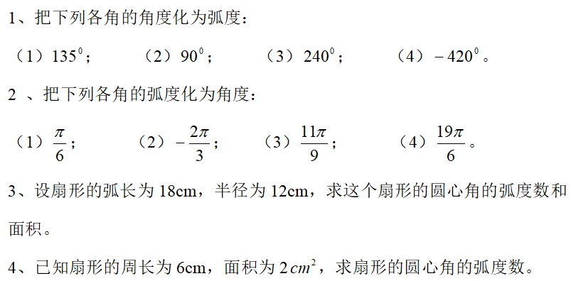 3.弧度制下的弧长公式、扇形面积公式。
