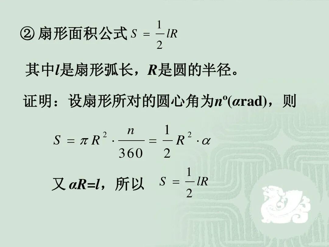 利用弧度制推导扇形面积公式其中是扇形的弧长,是扇形的半径。